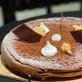 Bolo de chocolate artesanal feito com chocolate Valrhona, sem conservantes e sem estabilizantes artificiais, o que pode resultar num aspecto mais rústico e variado de peça para peça.